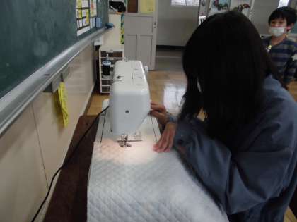 6年生が、修学旅行に持っていくナップザックの制作に取りかかりました。ケガがないように安全なミシンの使い方を再確認しました。お気に入りのナップザックができるといいね。