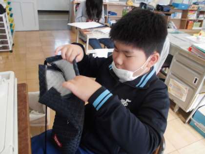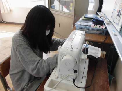6年生のナップザック作り2回目の様子です。ミシンの扱いにも慣れ、だいぶ仕上がってきました。