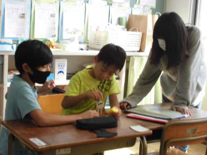 活動の様子【10月11日(火)のたんぽぽ】 公開日 2022/10/11 更新日 2022/10/11 たんぽぽ 昼放課に図工作品をボンドで接着していると、5・6年生が見に来ました。 「乾くまでは倒れやすいよ。」と、日当たりのよい場所へ。秋の日差しを浴びて、ひなたぼっこしているようでした。