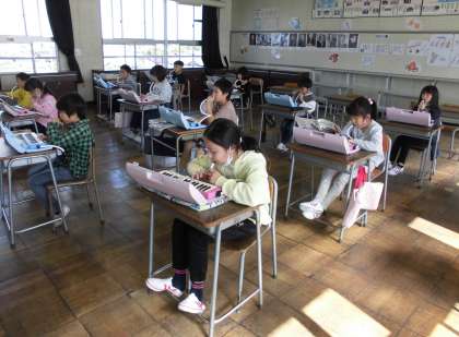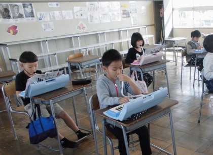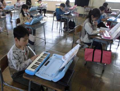 すてきな音色!【10月11日(火)の2年生】 公開日 2022/10/12 更新日 2022/10/12 2年 音楽の授業では、鍵盤ハーモニカで「こぎつね」を演奏しました。主旋律とソの音の旋律に分かれて合奏をし、素敵なハーモニーを奏でていました。