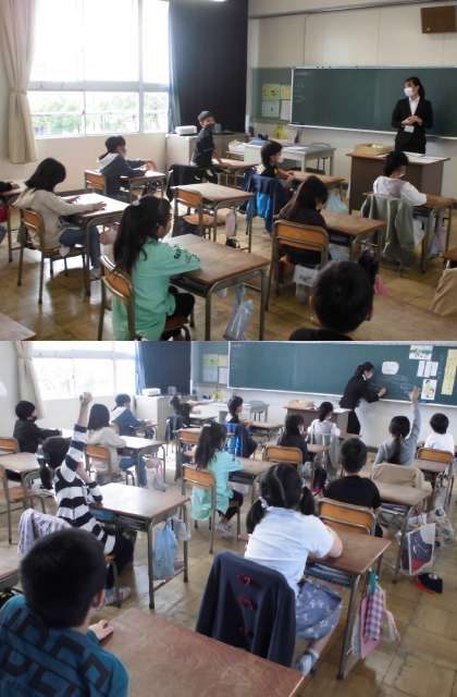 教育実習の先生の授業が行われました。めあての働くことのよさについて考えを深めるため、積極的に自分の意見を発表しています。