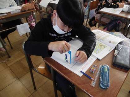 活動の様子【10月18日(火)のたんぽぽ】 公開日 2022/10/18 更新日 2022/10/18 たんぽぽ 交流クラスの算数で、コンパスを使って模様を描きました。コンパスの使い方が、使えば使うほど上手になっています。