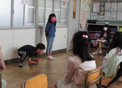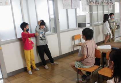 兄弟ペアで練習【10月18日(火)の2年生】 公開日 2022/10/18 更新日 2022/10/18 2年 教育漫才の練習が進んでいます。今日は、兄弟ペアを作り、お互いの教育漫才を見て、気づいたことを伝えあいました。アドバイスを生かして、クラス全体での発表にも挑戦。まだまだ未熟な状態ですが、だんだん形になってきました。