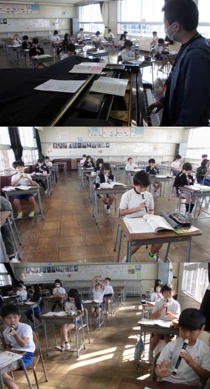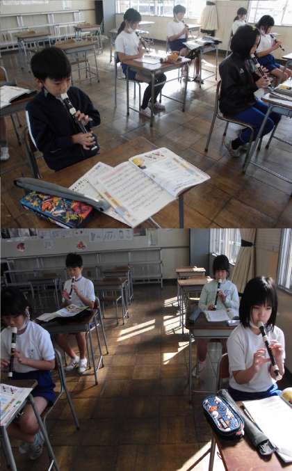 曲の特徴をとらえた表現を工夫しながら、リコーダー演奏をしています。
