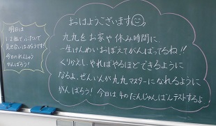 担任の先生より【10月20日(木)2年生】 公開日 2022/10/20 更新日 2022/10/20 2年 九九マスターをめざして、お家でも練習をがんばってるようです。感心します。明日は、教育漫才の舞台見合わせ会があるようですね。それぞれの演技を見合って、みんなでよりよいものにつくりあげていきましょう。友達の演技を聴く人の姿勢で、よりよい演技がつくりあげられるものです。