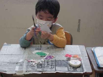 活動の様子【10月19日(水)のたんぽぽ】 公開日 2022/10/20 更新日 2022/10/20 たんぽぽ 体育の鉄棒では、1-1の男の子が「次、○○だよ。」と言ってくれた技に順に挑戦しました。棒をしっかりと握って、ぶら下がったり、足をかけたりするのが上手になってきました。 図工では、クレパスで色をぬった絵を切ったり貼ったりして、秋の食べ物を表現しました。