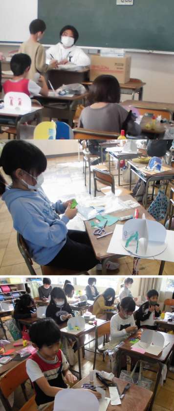 紙が回る仕組みを動かしながら、表したいことを表現しています。