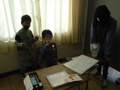 活動の様子【10月21日(金)のたんぽぽ】 公開日 2022/10/21 更新日 2022/10/21 たんぽぽ 食べ物カードの絵を見て、その名前を考え、ひらがなカードを並べるクイズをしていたら、上級生が助っ人にやって来ました。「ば!はじめは、ばだよ。」「こっちの方にあるんじゃない?」などとヒントを出してくれて、笑顔で楽しく学習できました。