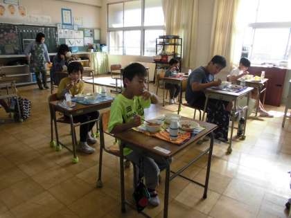活動の様子【10月24日(月)のたんぽぽ】 公開日 2022/10/24 更新日 2022/10/24 たんぽぽ 給食の時間です。献立は人気メニューの照り鶏と、きのこやサツマイモがたっぷり入った秋の味覚汁でした。おいしくいただきました。