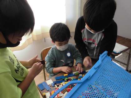 活動の様子【10月24日(月)のたんぽぽ】 公開日 2022/10/24 更新日 2022/10/24 たんぽぽ 放課にレゴで遊びました。プレートを横につなげて、長い部屋を作っていました。 使いたい部品を探していると、上級生がかごを横にして、一緒に探してくれました。