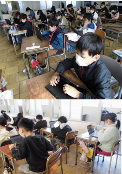 友達が作った紹介文やリーフレットをみて、よいところをみつけています。