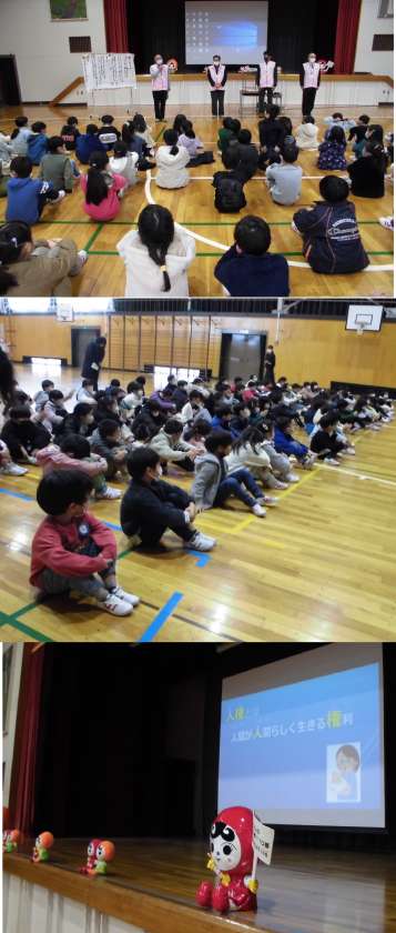 人権擁護委員の方々に来校いただき、人権教室を行いました。人権について映像やクイズ、歌を交えてわかりやすく教えていただきました。困ったことがあれば、家族・先生・友達に相談したり、子供人権SОSレターを使って相談したりすることもできることを教えてもらいました。