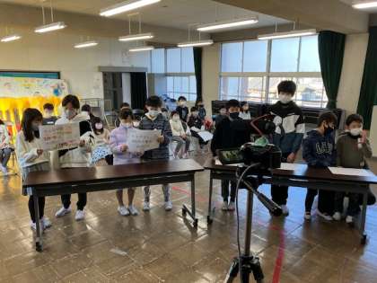 この日はオンライン集会でクラスの代表が全校児童にスローガンを紹介しました。