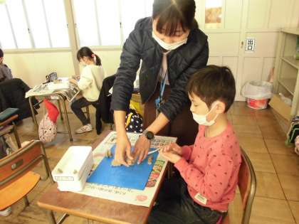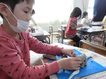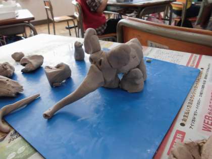 交流クラスの図工の様子です。粘土で、動物をつくりました。画像を見ながら、本物のように作りました。上手にできたね!