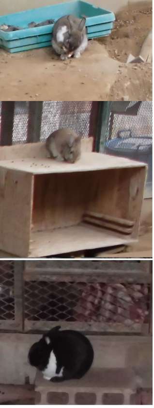 みんなのウサギ【12月10 日(土)本校自慢のウサギたち】 公開日 2022/12/10 更新日 2022/12/10 みんなのウサギ きなこは顔を洗っています。モナカは木箱の上にいます。元気に動き回っています。ショコラとくろみつはいつもの場所でじっとしています。