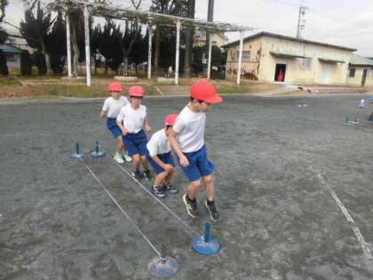 体育の様子【12月8日(木)2年生】 公開日 2022/12/09 更新日 2022/12/09 2年 体育で「跳び遊び」をしました。 跳び方を工夫し、楽しく運動しました。 初めてゴム跳びにも挑戦し、友達とリズムよく跳べるように練習しました。