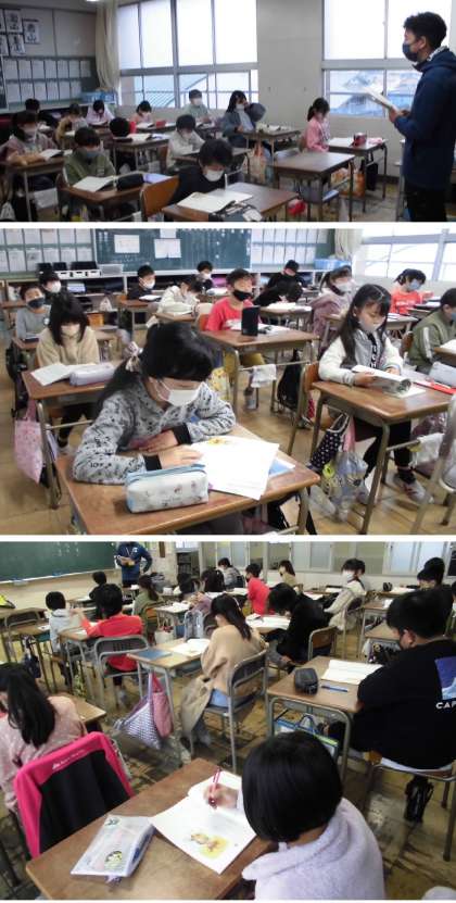 「読むこと」において、登場人物の気持ちの変化や性格・情景について、場面の移り変わりと結び付けて考え、問いに対してどのように答えたらよいかを考えています。