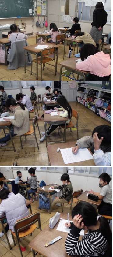 自分の作品、友達の作品を鑑賞してよいところみつけをしています。