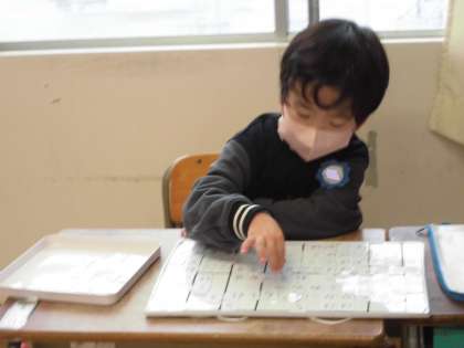 ひらがなカードの学習では、「たまねぎ」や「たけのこ」を正しい順に並べることができました。