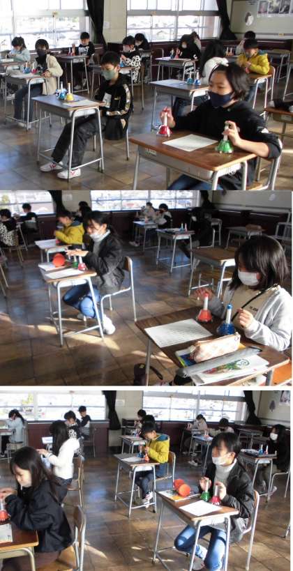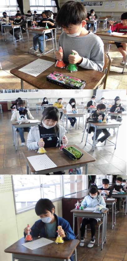 ハンドベルを使って演奏しています。クリスマスが楽しみにしている様子が伝わってきました。