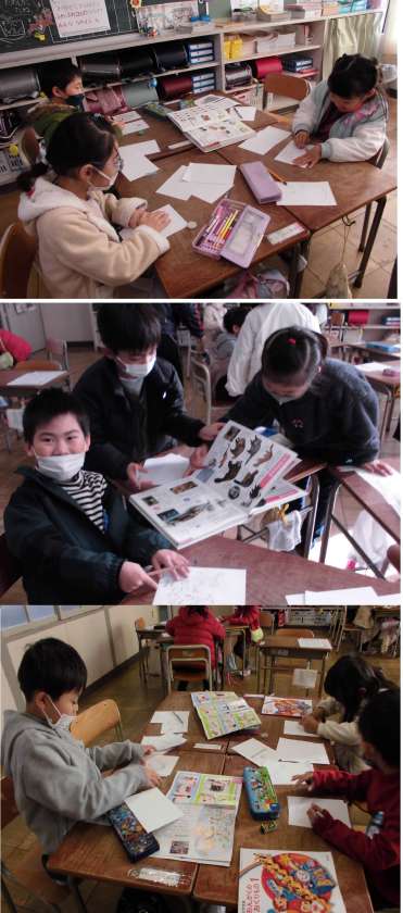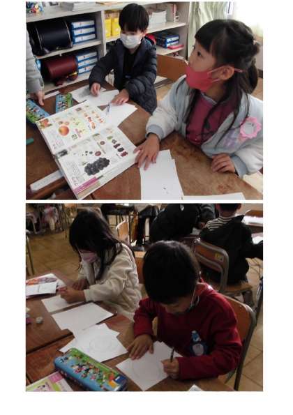 「おみせやさんごっこ」をするため、開きたいお店ごとに品物の絵をつくっています。じょうずに描いた品物の絵を、説明してくれたり、みせてくれたりする子もいました。「おみせやさんごっこ」が楽しみですね。