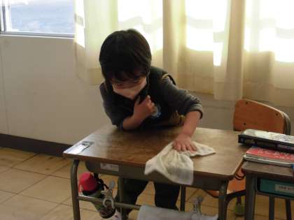 今日は大掃除でした。置いている物を移動させ、机や棚の中を水拭きしました。