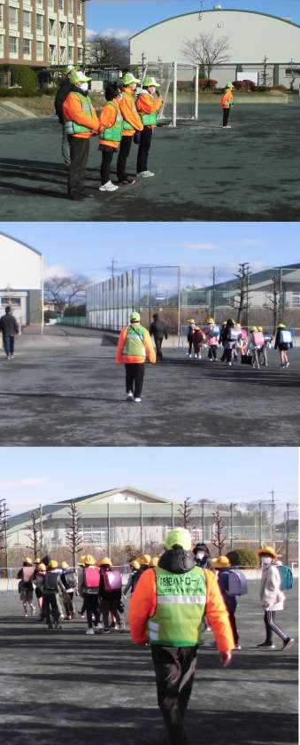 寒いなか民生委員さんに来校していただき、付添下校をしていただきました。新しく民生委員になられた方より、あいさつをしていただきました。これから、たいへんお世話になります。よろしくお願いします。