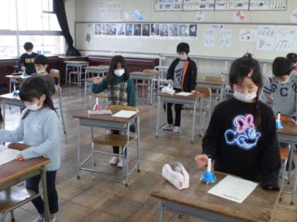 2学期最後の音楽の授業でした。 ハンドベルでジングルベルを楽しく演奏しました。