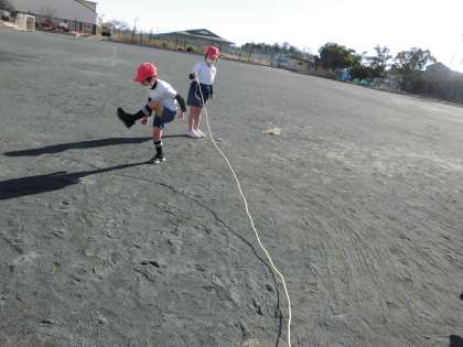 交流先の体育の様子です。なわとび大会に向けて練習しました。みんなで掛け声をかけて、タイミングよく跳べました。うれしいね!