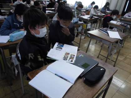 交流クラスの社会の様子です。七宝焼きについて勉強していました。