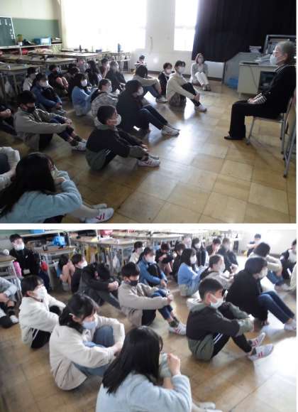 おはなし会【3月9日(木)5年生】 公開日 2023/03/09 更新日 2023/03/09 5年 一宮ストーリーテリングの会 おはなしぽけっとさんに来校いただき、日本の昔話を2話とグリムの昔話を話していただきました。やさしい語りが印象的で勉強になりました。
