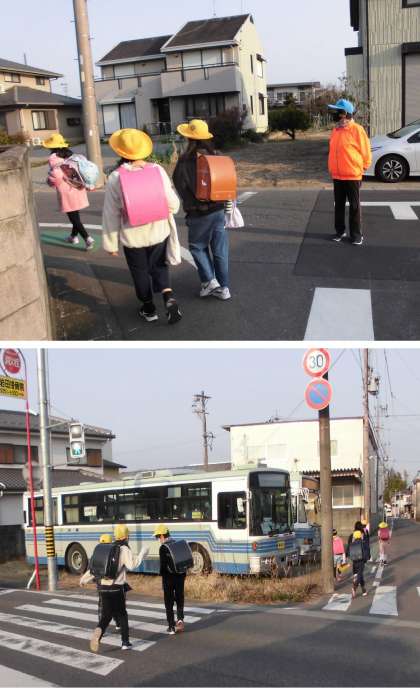 登校です【3月9日(木)全児童】 公開日 2023/03/09 更新日 2023/03/09 児童 登校時も、春が来たことが感じられるようになってきました。今日もたくさんのPTAの方々、見守り支援の方々に守られて登校を終えることができました。ありがとうございました。今日の下校は、1年と2年が14:55、3年〜6年が15:50の予定です。よろしくお願いします。