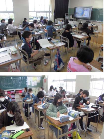 地球の写真や地球儀を見て、世界の中の日本について考え、これから学びの方向付けをしています。