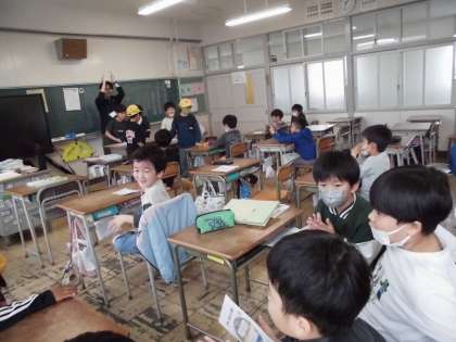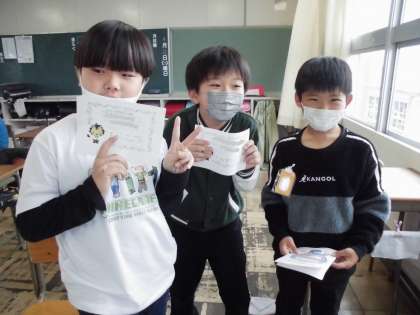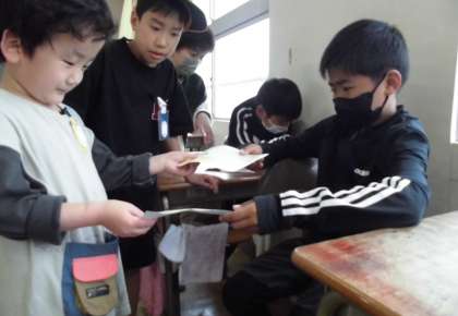 ふれあいタイムで、2年生・4年生ペアの初顔合わせがありました。名刺交換をした後、4年生がクイズを出してくれて、みんなで楽しい時間を過ごしました。