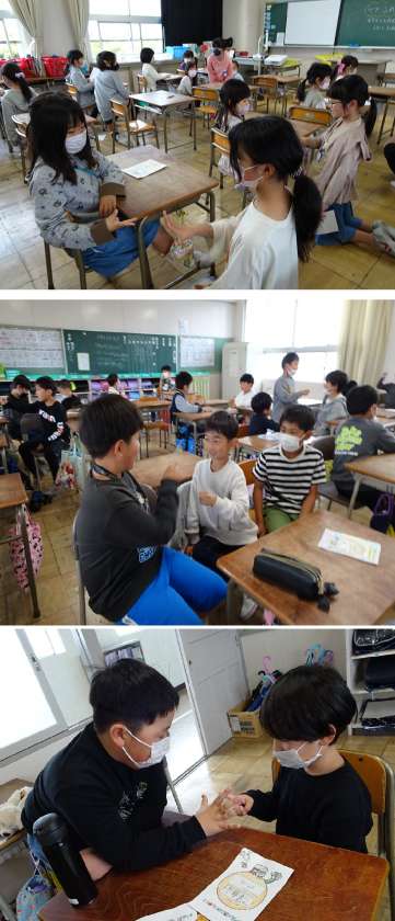 ふれあいタイム【4月12日(水)2年生と4年生】 公開日 2023/04/12 更新日 2023/04/12 人権・いじめ対策関連 ペア学年で、今年度最初のふれあいタイムを行いました。自己紹介をしたあと、ペアになった子たちと話をしたり、じゃんけんゲームをしたりして笑顔の花が咲きました。