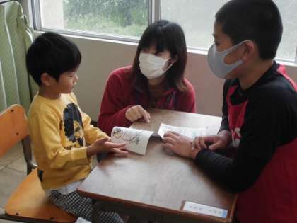 ふれあいタイムがありました。ペアの子に、自己紹介カードを渡し、じゃんけんをして遊びました。まずは、ふれあい遠足で一緒に活動します。よろしくお願いします。〜その1〜
