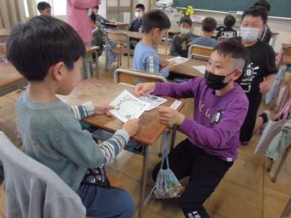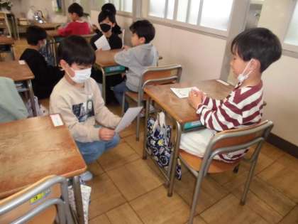 1・6年生ペアで、自己紹介をしたり、じゃんけんをして遊びました。