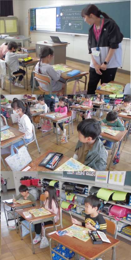 鳥と巣箱が複数かかれている絵を見て、全部の鳥が巣箱に入ることができるかを考えています。鳥と巣箱という、2つのものの集まりの要素を線で結んで、1対1の対応をつけて多いか少ないかを判断しています。