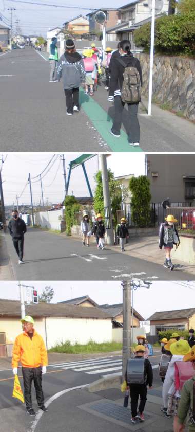今日もたくさんのPTAの方々、見守り支援の方々に守られて、登校を終えることができました。今日の下校は、1年と3年が14:55、2年と4年〜6年が15:50の予定です。よろしくお願いします。