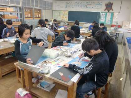 12月3日の6年生2 公開日 2010/12/05 更新日 2010/12/04 6年 今日は多色刷版画を行いました。展覧会にも展示するということでいつもの作品よりも一層頑張り、色を工夫したり、色を重ねたり考えて仕上げていました。展覧会が楽しみです。