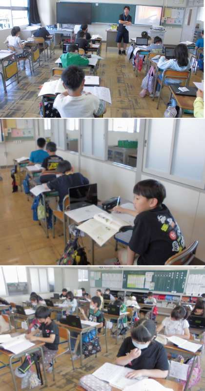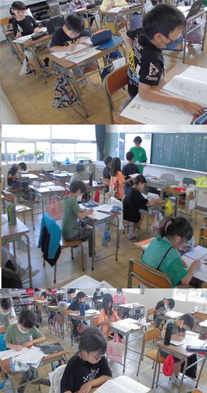 季節のあいさつを考えて、運動会の招待状をつくっています。