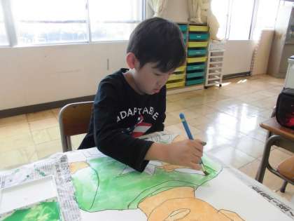 生活単元では季節の塗り絵、図工では写生会で自分の姿を描きました。丁寧に色塗りをすることができました。