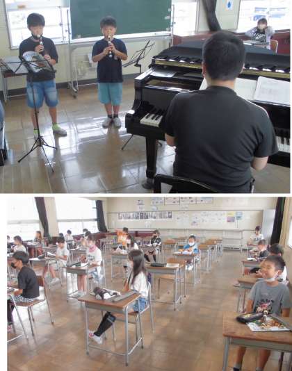 拍やその流れ、旋律を聴き取って、リコーダー演奏をしています。仲間ががんばって演奏していることに、聴いている子たちが応援しています。すばらしいクラスですね。