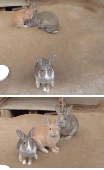 きなこと赤ちゃんウサギは、なかよくじゃれ合っていましたが、カメラを向けたことがわかると、カメラ目線になってポーズをとってくれました。ショコラの背中の毛は、どんどん夏の毛になってきています。やや元気がなかったショコラは、地域の方から免疫力アップを願ってたくさんの支援をしていただいています。おかげで元気を取り戻してきています。温かい心は元気の源ですね。ありがとうございます。