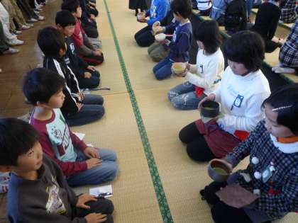 お茶会を終えての感想で、「2学期だけで終わってしまうのが残念。」「冬休みにおばあちゃん家でやってみたい。」「日本文化の奥深さを感じた。」と書いていました。