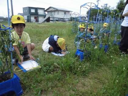 2年生は交流学級のみんなとミニトマトの観察をして、絵をかきました。