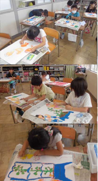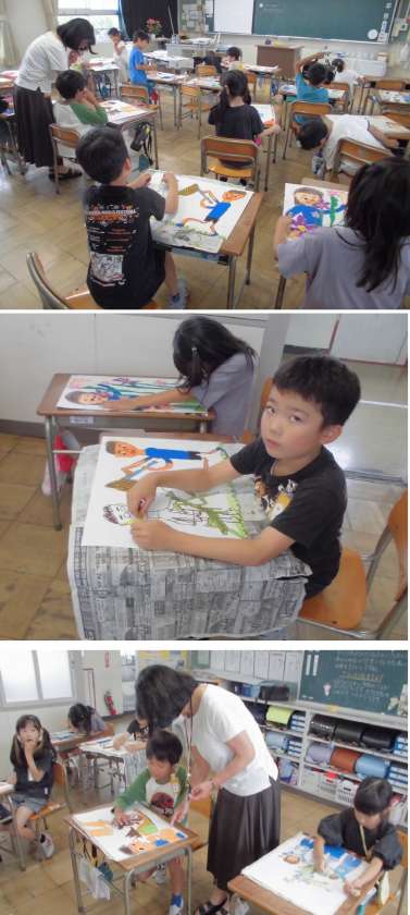 絵の具をぬって、絵を完成をめざしています。