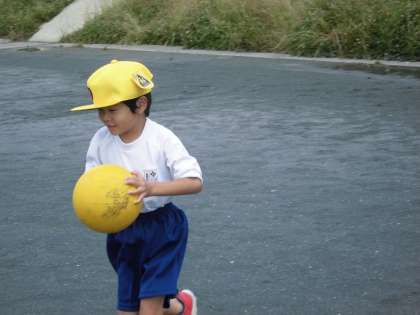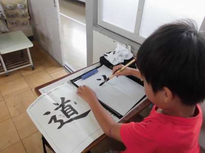 1年生は、体育でボール遊びをしました。ペアの子とキャッチボールをしました。5年生は、書写で「道」という字を書きました。バランスをとるのが難しかったです。