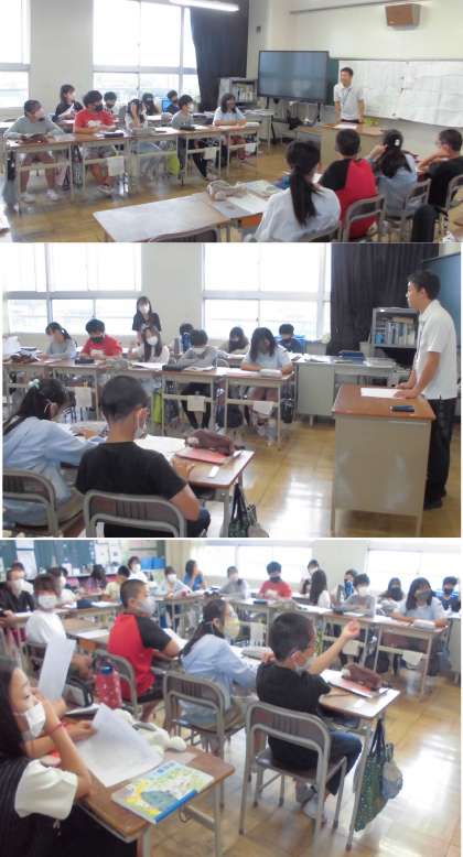 意見をつなぐ学び合い【6月12日(月)6年生】 公開日 2023/06/12 更新日 2023/06/12 6年 説明文の「なか」にあたる部分がいつくに分けられるのか、話し合いを終えて、三角ロジックを使って、自分のことばでまとめを書こうとしています。