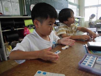 活動の様子【6月13日(火)のたんぽぽ】 公開日 2023/06/13 更新日 2023/06/13 たんぽぽ 1年生は算数でたしざんの勉強をしています。5年生はたんぽぽでプログラミング学習をしました。